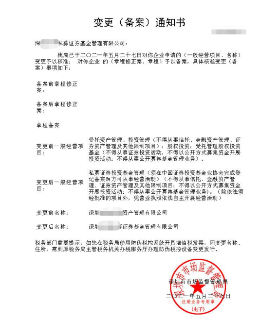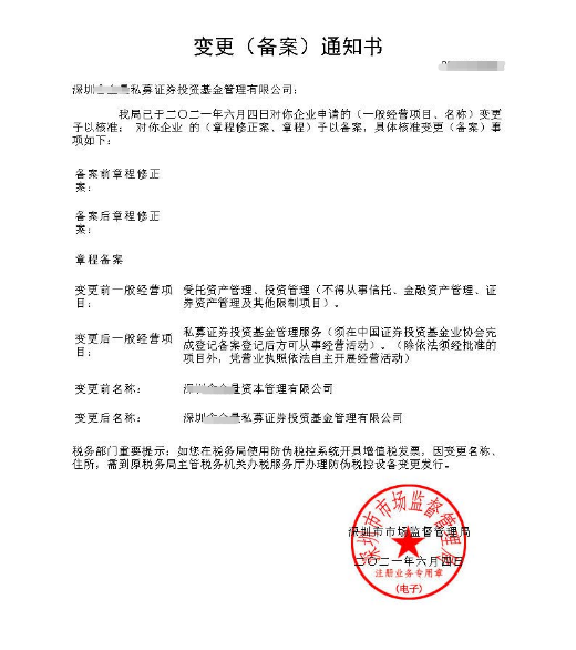 深圳私募基金管理人特殊名称更改